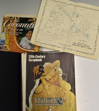 Royal Ephemera Selection to include a porcelain soup bowl with ‘GviR’ King George VI cipher – marked to underside^ measures 25cm diameter^ plus shaving beaker with GR VI cipher to underside^ plus a worn cut napkin showing floral insignia^ all from a Royal Housekeeper at Windsor Castle in the 1940s and made the HRH The Queen mother’s preserves^ together with a selection of pamphlets^ booklets^ guides and newspaper cuttings etc (Qty) Small Box