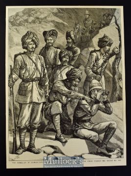 India & Punjab - The Rebellion in Afghanistan - Group of the Corps of Guides original engraving 1879 showing the guides on Scouting duty with Sikhs^ Punjabis etc 32x24cm laid to card