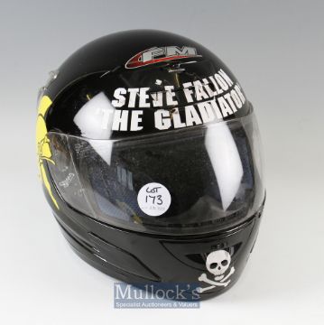 FM Motorcycle Full Face Helmet with applied stickers Steve Fallon 'The Gladiator' and helmet stickers.