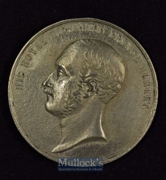 Large Prince Albert Memorial Medallion 1861 - Obverse; Portrait Bust of Prince Albert. Reverse; Seated figure of mourning Britannia with Lion before Tomb. White Metal size 65mm.