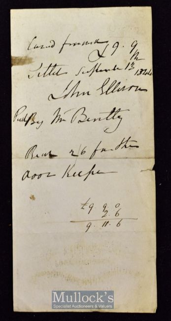 Coaching Inn Printed Bill - Devonshire Arms & Posting Inn^ Keighley 1844 Printed bill with manuscript annotations for travel to Bradford and various drinks^ size 4” x 8¼”.