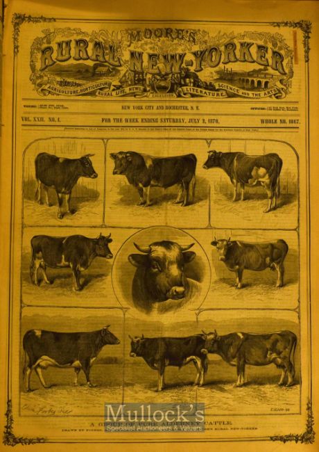 Americana – Moore’s Rural New Yorker a National illustrated^ Rural^ Literary and Family Newspaper 1870s – Vol 22 Jul-Dec^ No1-25^ Part Vol 21 Nos 15-26 1870^ with woodblock illustrations and adverts^ large folio^ size 33x48cm approx.^ mixed conditions A/G^ small tears^ scuffs etc in places Box