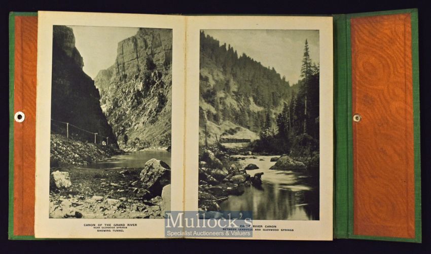 The Canyons Of Colorado Circa 1890s Souvenir Album A fold out Souvenir Views Album of 16 photograph on thick card of the Canyons mostly also showing the railway running through them including the Royal Gorge and suspended bridge. Printed and bound in Denver by Frank & Thayer^ publisher. In green and black cloth board binding with photograph on front cover^ size 5½” × 8¼”.
