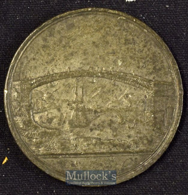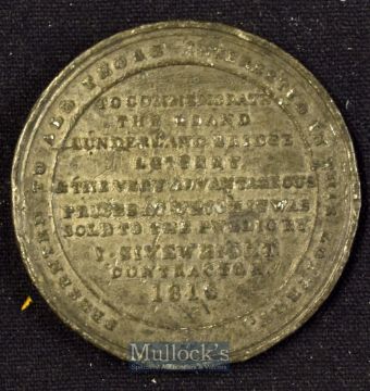 Sunderland Bridge Lottery 1816 Medallion - issued to promote this Lottery. Obverse; View of the Bridge. Reverse; Legend Presenting to those interested in the Lottery. To commemorate the Grand Sunderland Bridge Lottery & the very advantageous prices at which it was sold to the public by I Sivewight. Contractor 1816. White metal 45mm diameter. Then the largest single span bridge in the World. First Prize was £5^000 and there were 120 prizes of £100.