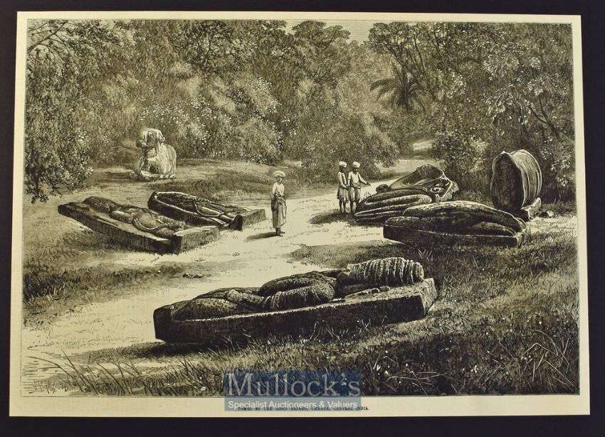 India - Tombs of the Gond Rajahs^ Chanda^ Central India original engraving 1875 32x23cm laid to card