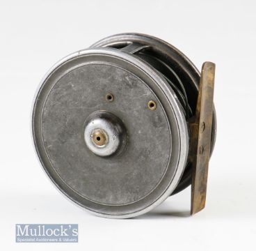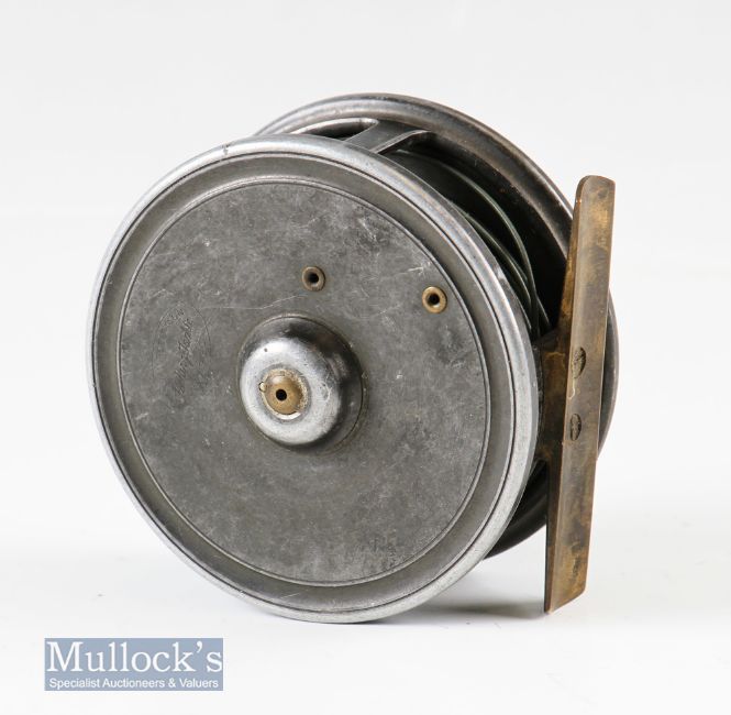 William Robertson Glasgow 2 7/8” Struan Patent alloy trout fly reel with centre brake^ smooth brass foot and constant check^ no Dingley mark internally^ runs smooth
