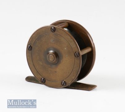 c1886 G Little & Co 53 Haymarket London SW 2 ½” all brass reel inscribed to the face^ plate wind^ smooth foot^ 5 pillar construction^ constant check^ runs smooth^ small chip to rim and foot