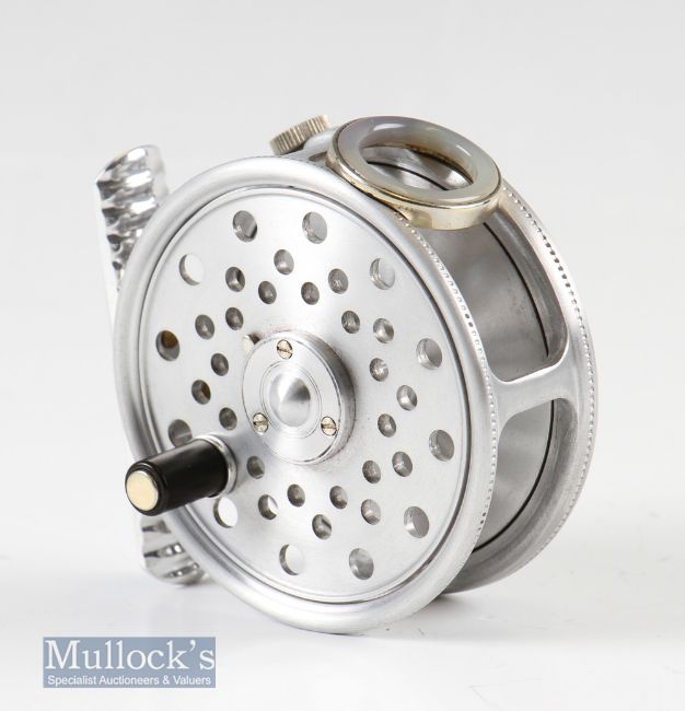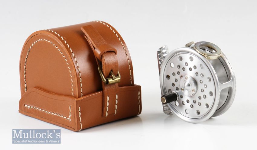 Hardy Bros England ‘The St George Junior’ Spitfire finish 2 ½” alloy fly reel patent 24245&9261 agate line guide^ ribbed foot with maker’s leather block case in very good condition