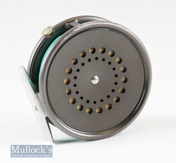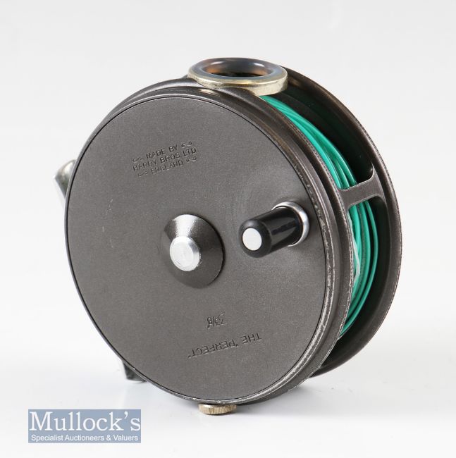 Hardy Bros England ‘The Perfect’ 3 3/8” alloy trout fly reel with agate line guide^ loaded with line^ smooth foot^ runs smooth^ with padded leather zip case