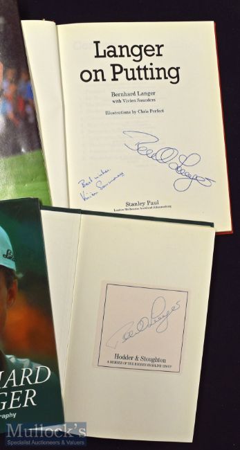 Langer^ Bernhard golf books signed (2) - “My Autobiography” 1st ed 2002 signed on publishers Hodder & Stoughton headed label laid down to the front free end plate –c/w dust jacket (G); and “Langer on Putting with Langer and Vivien Saunders” signed by both players to the main title page 1st ed 1987 c/w dust jacket in (G)
