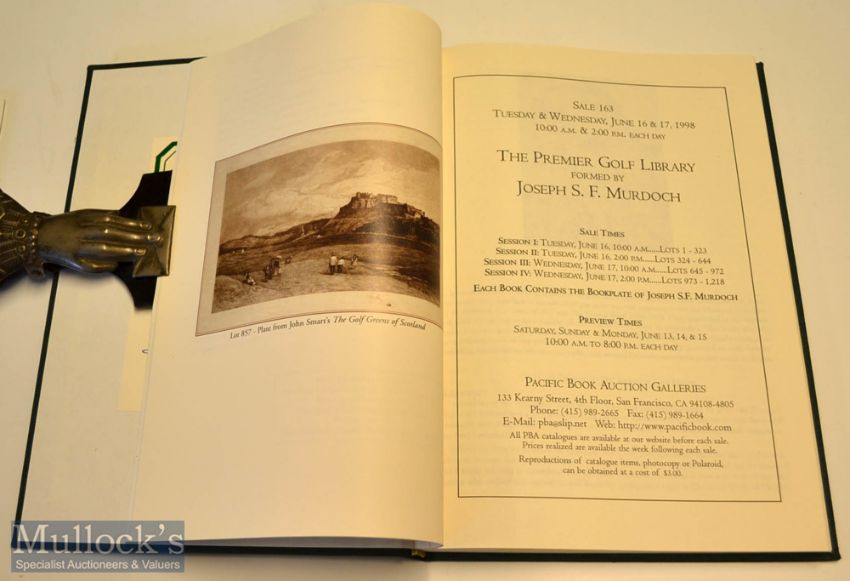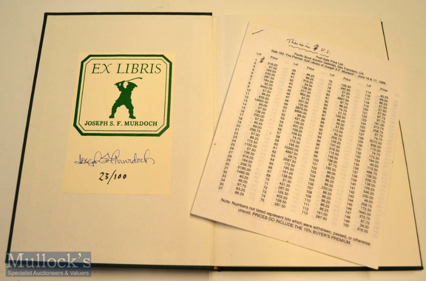 Murdoch^ Joseph S F rare bound signed ltd ed copy golf auction catalogue titled “The Premier Golf Library Formed By Joseph S F Murdoch” held by P B A in June 1998 in green cloth and gilt boards and spine c/w Joseph Murdoch Ex Libris signed book label ltd ed number 23/100 together with the full prices realised list- appears unread – a very rare copy from the library of Joseph Murdoch