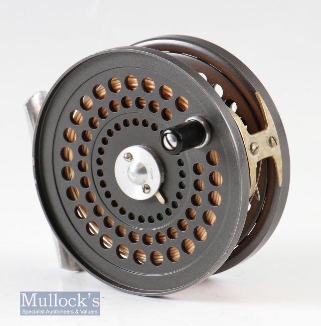 Orvis C F O IV 3 1/8” trout fly reel made by Hardy with perforated body and foot^ U shape line guide^ runs smooth^ little sign of use^ with line