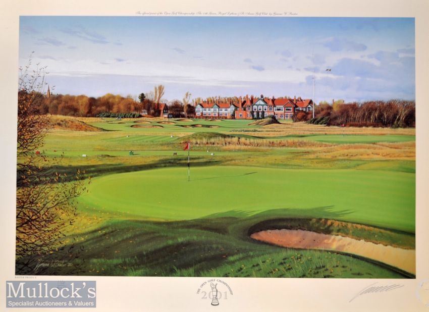 2001 Official Royal Lytham Open Golf Championship signed ltd ed print by Graeme Baxter – signed by the artist in pencil to the border – no 114/850 – won by David Duvall (USA) – loose overall 20.25” x 27.75”