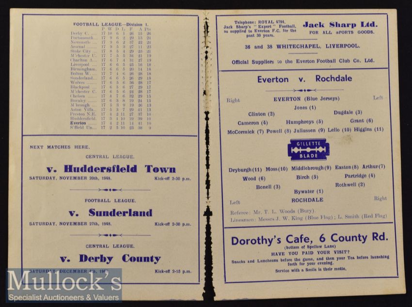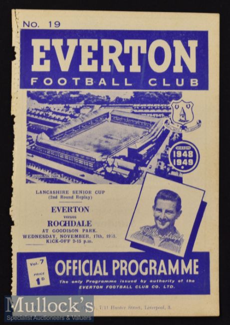 1948/49 Lancashire Senior Cup Everton v Rochdale Football Programme date 17 Nov^ ex bound with frayed spine