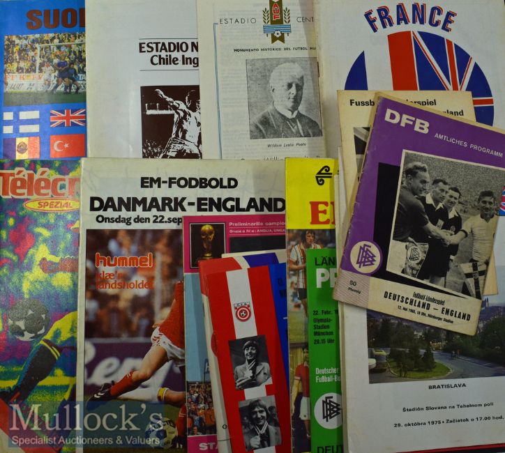 England international away match programmes to include 1965 Germany^ 1975 Switzerland x 2^ Czechoslovakia^ Portugal^ 1976 Brazil/USA Italy Bicentennial Cup (Bobby Moore^ Pele and George Best in the USA team)^ 1978 Germany^ New Zealand 1979 Bulgaria^ Sweden^ Austria^ 1980 Romania^ 1981 Norway^ Switzerland^ Hungary^ 1982 Denmark^ 1983 Luxemburg^ Hungary 1984 France^ Uruguay^ Chile 1986 Fulham (22) Fair-Good.