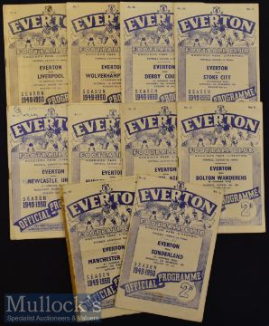 1949/50 Everton Home Football Programmes to include Sunderland^ Man Utd^ Bolton Wanderers^ Charlton Athl.^ Huddersfield Town^ Newcastle Utd^ Stoke City^ Derby County^ Wolverhampton Wanderers^ Liverpool^ Various condition F/G overall (10)