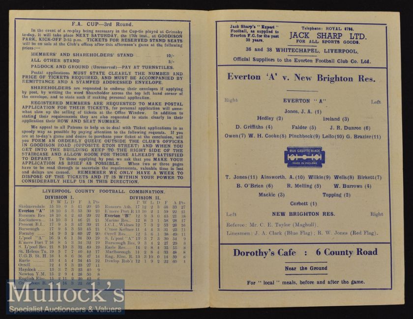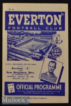 1947/48 Everton A v New Brighton Reserves Football Programme LCFA Challenge Cup date 10 Jan^ single sheet^ G overall