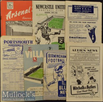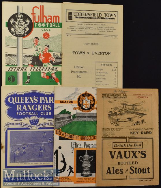 1949/50 Everton Away Football Programmes to include Middlesbrough^ Wolverhampton Wanderers^ QPR (FAC)^ Huddersfield Town^ Fulham^ West Bromwich Albion^ Birmingham City^ Aston Villa^ Portsmouth^ Man City^ Newcastle Utd^ Arsenal^ condition varies A/G overall (11)