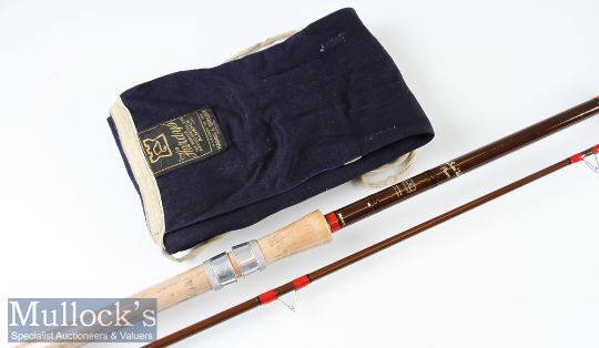 Fine as new Hardy Bros Made in England “Richard Walker Avon” Fibalite rod - 10ft 2pc - with amber lined butt and tip guides – 28.25” trumpet style cork handle with alloy sliding reel fittings and still retaining the original cellophane sleeve – appears unused in MCB