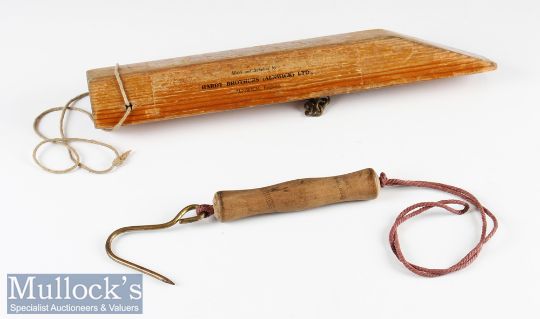 Hardy Silver Devon Wooden Tackle releaser with instructions to one side plus Hardy Ford’s patient salmon carrier, both items with maker’s details (2)