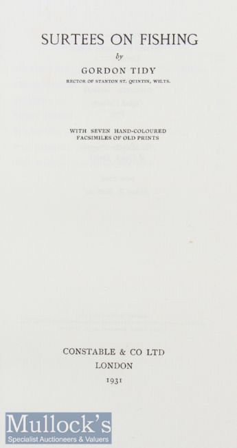 Tidy, Gordon - “Surtees on Fishing” 1st ed. 1931 limited to only 500 copies – publ’d Constable & Co Ltd London – c/w 7 coloured facsimile of old prints - original green cloth and gilt boards and spine - very clean (G)