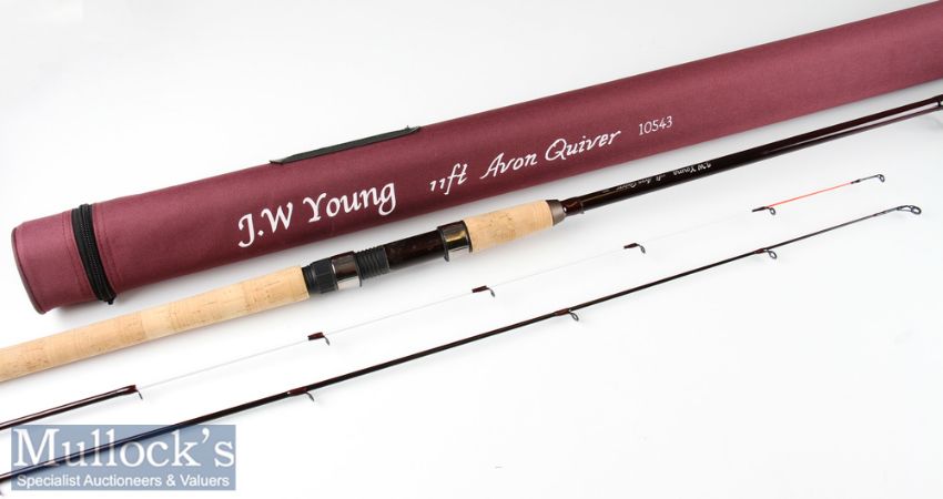 Fine as new J W Young “The Avon Quiver” 10543 model specimen rod – 11ft 3pc with Fuji style line guides, 23” cork handle fitted with “Rovex” screw locking reel fittings with matching carbon rod spacer - comes in the original makers bag and makers cordura matching rod tube