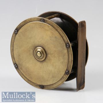 R Anderson & Sons Princes St Edinburgh Hercules style brass salmon reel – 3.75” dia – raised plate wind – constant check – horn handle – runs very smoothly – appears all original