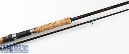 Good Daiwa “Graphite Salmon – CS98 - 11S” spinning rod - 11ft 2pc cwt 10-50gm - 29 inch trumpet style cork handle fitted with makers alloy screw locking winch fittings with carbon spacer (very clean) – in makers cloth bag