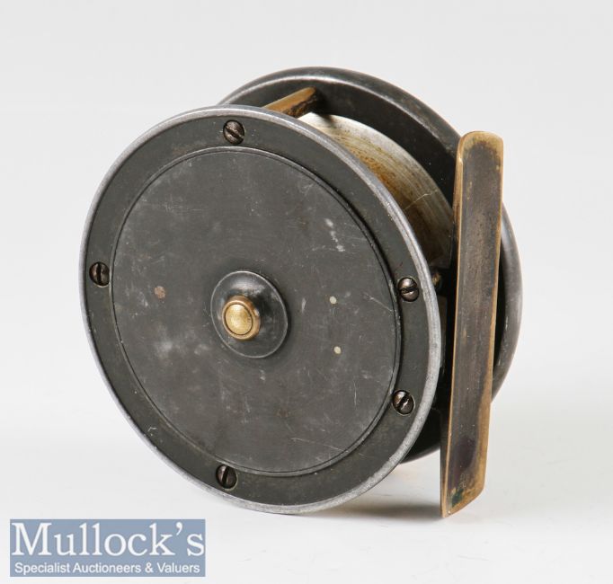 P D Malloch Maker Perth alloy trout fly reel – 3” dia, smooth brass foot, constant check – runs smoothly – retaining much of the original finish – runs smoothly