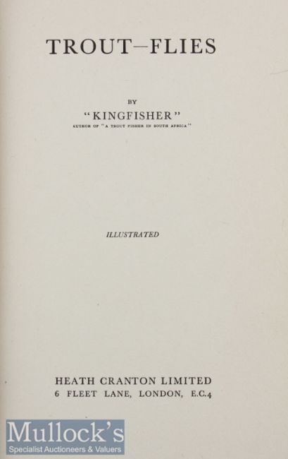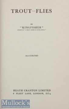 Kingfisher (Fred Bowker) -“Trout Flies” 1st ed 1938 publ’d Heath Cranton London in the original blue cloth pictorial boards – c/w 32 illustrations overall (G)
