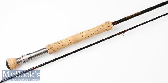 Good Orvis Trident PM10 trout fly rod – 10ft 2pc line 6#, wt 4 5/8oz - with anodised screw locking reel fittings and spacer (signs of slight use) otherwise extremely clean cork handle comes in makers original green cord your rod tube with brass plaque to the top with rod details - a very lightly used rod
