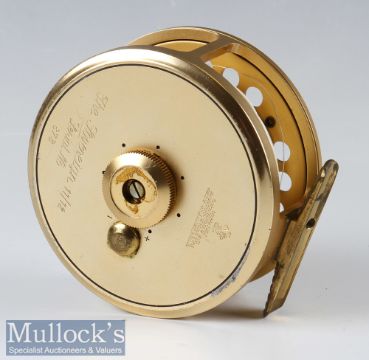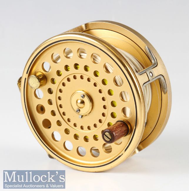 Hardy The Gold Sovereign 11/12 Salmon Fly Reel and spare spool – ltd ed no 873, ribbed foot, twin “U” line guides, rear disc adjuster (minus cap), both fitted with Arrowhead AHT9/11F lines – and both come in makers black padded cases – some signs of use
