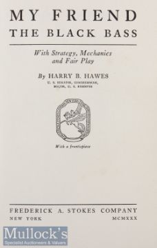 Hawes, Harry B - “My Friend-The Black Bass - with Strategy, Mechanics and Fair Play” 1st edition 1930 published Frederick a Stokes company New York with green and gilt decorative cloth boards and spine (note Harry B Hawes US Senator, Congressman, Major, and US Reserves) good clean copy