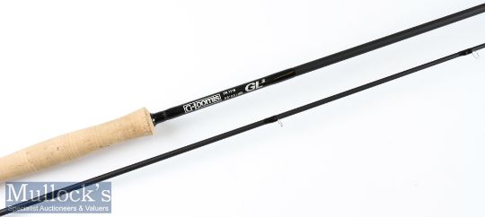 Fine G Loomis GL3 FR1178 Carbon Fly Rod – 9ft 9in 2pc line 8# - 2x fuji lined butt guides - matt black anodised reel locking fittings – very clean cork handle – appears unused in makers green velvet/moleskin style cloth bag and makers black cordura rod tube with makers leather badge