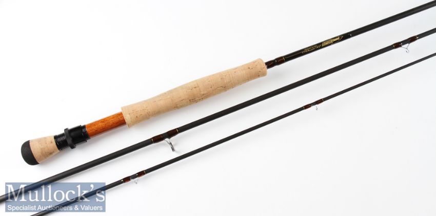 Fine as new Michael Evans Arrowhead “All Rounder” carbon trout fly rod – 9ft 3in 3pc line 6/7# - black anodised screw locking winch fittings with wooden spacer – fuji style butt and tip line guides – very very light soiling to cork handle otherwise it appears unused – c/w makers black cloth bag and matching makers black cordura rod tube