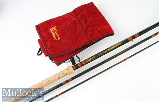 Good Bruce & Walker “Hugh Falkus Speycaster No.1” Hexagraph Hand built Salmon fly rod – 15ft 3pc - DTF11 #6 - with Fuji style butt and tip guides - with alloy sliding reel fitting-onion style 24.5 inch cork handle – lightly used c/w original makers red velvet style cloth bag