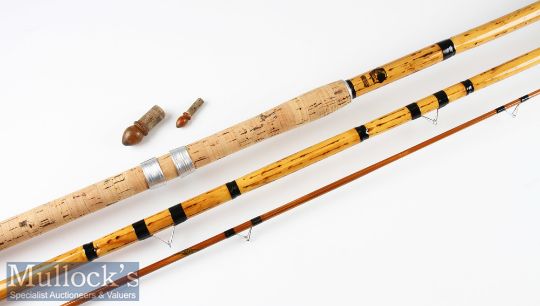Fine Milwards “Featherlite” Spanish Reed/Split Cane rod fully refurbished – 13ft 3pc with whole cane butt and mid-section with twin taper split cane tip – agate lined butt and tip guides – with the original Milwards Arm Logo, Rod Model and Twin Tip decal labels (all complete) and retaining the original Ser No 4089 and 13ft rod length - 24” cork handle with alloy sliding reel fittings - professionally refurbished to the exact original finish – retaining butt and tip rings – refurbished by Andrew Davis July 2011 – comes in cloth bag