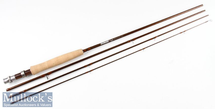 Fine Sage Flight 484 Carbon Travel Fly Rod - 8ft 6in 4pc line 4# - wt 3 1/8oz – fuji style butt guide – anodised up screw winch fittings with wooden spacer – golden brown finish – in makers matching cordura and embroidered rod and reel case – appears unused.