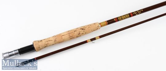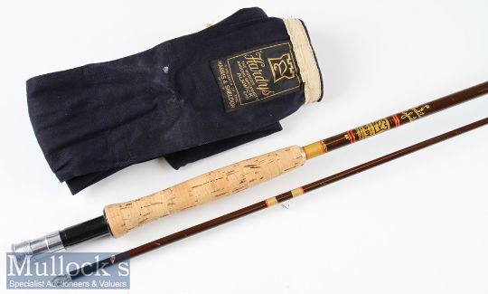 Fine Hardy Bros Made in England “Fibalite Perfection” fly Rod – 8ft 6in 2pc line 6# - with very clean cork handle fitted with alloy up screw locking winch fitting with black spacer appears unused in MCB