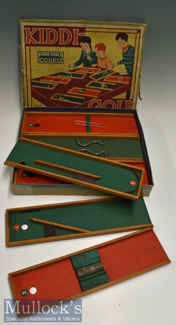 1930’s Kiddi-Golf Nine Hole Table Top Game set - in maker’s original box with hinged lid c/w with all Nine wooden constructed holes^ 3x balls and 2 clubs (ex-Schoenhut's) and instructions to the lid