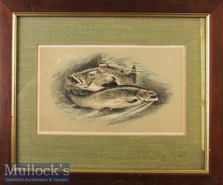 Circa 1880 ‘Salmon’ Lithograph by Wycliffe Taylor hand coloured framed measures 30x25cm