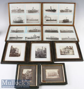 Selection of Shrewsbury^ Shropshire Black and White Photographs in five photographs of buildings^ plus a selection of Shipping related photocards all framed^ various sizes (21) Box