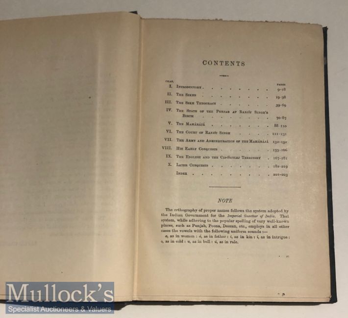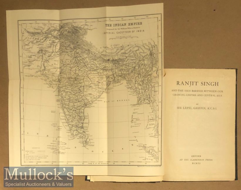 India - Ranjit Singh And The Sikh Barrier Between Our Growing Empire And Central Asia by Lepel Griffin. Early 1893 first edition of Rulers of India series complete with map of India. Published by Clarendon Press^ Original blue cloth with gilt titles. Sir Lepel Henry Griffin was a British administrator and diplomat during the British Raj period in India. He was also a prolific writer especially on the history and records of the Punjab and its chieftains