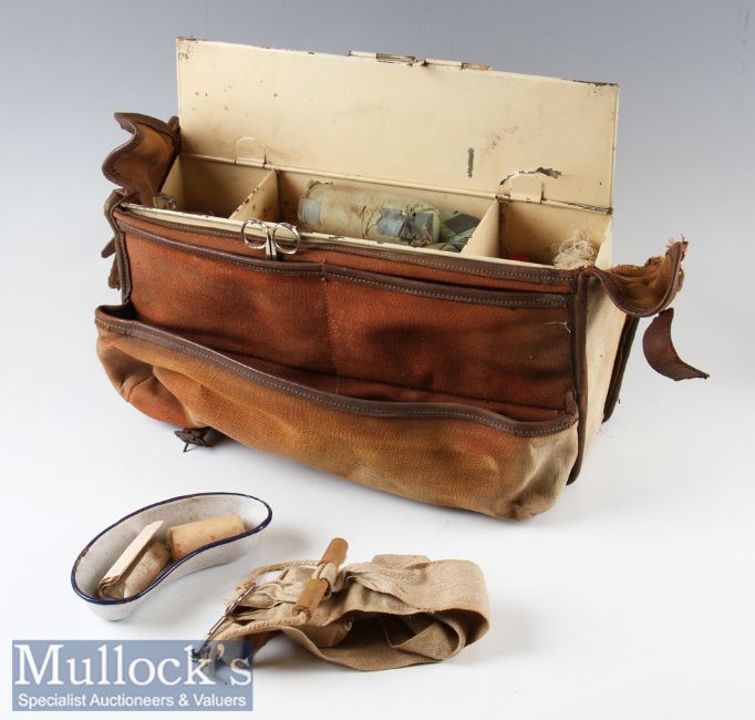 WWII St Johns Ambulance Association canvas bag with tin first aid box and all contents included^ bag with straps is worn condition as expected^ o/w condition appears G overall