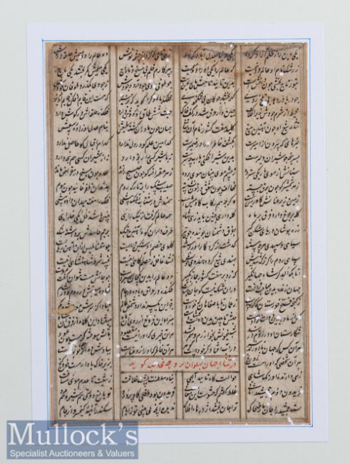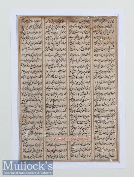 India / Asia - Poetry - Scripted In Either India or Timurid Persia^ Early c1450s - A very early example of manuscript poetry. The nasta’liq script is in a fine hand with gold ruled margins^ size 4¼” × 6¼”.