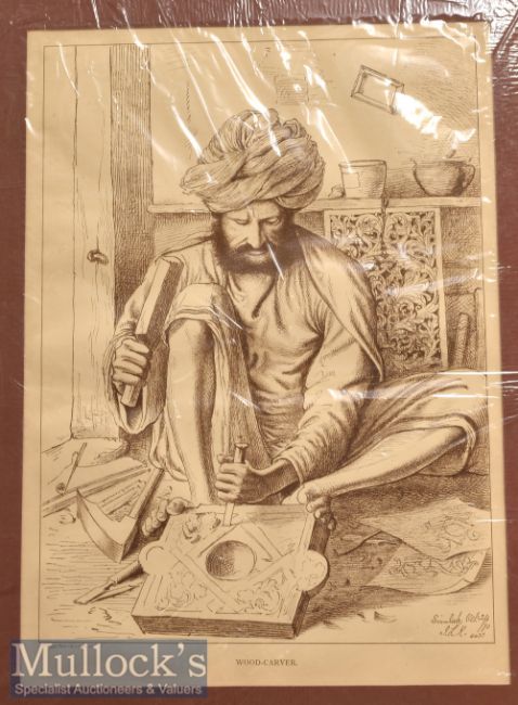 India – Wood Carver Print W. Griggs photo-litho. London mounted measures 37x49cm