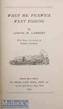 Lambert^ S W – When Mr Pickwick Went Fishing^ published by the Brick Row Bookshop^ 1924 1st edition^ 11 illustrations by Robert Seymour^ original dust wrapper^ scarce in this condition.