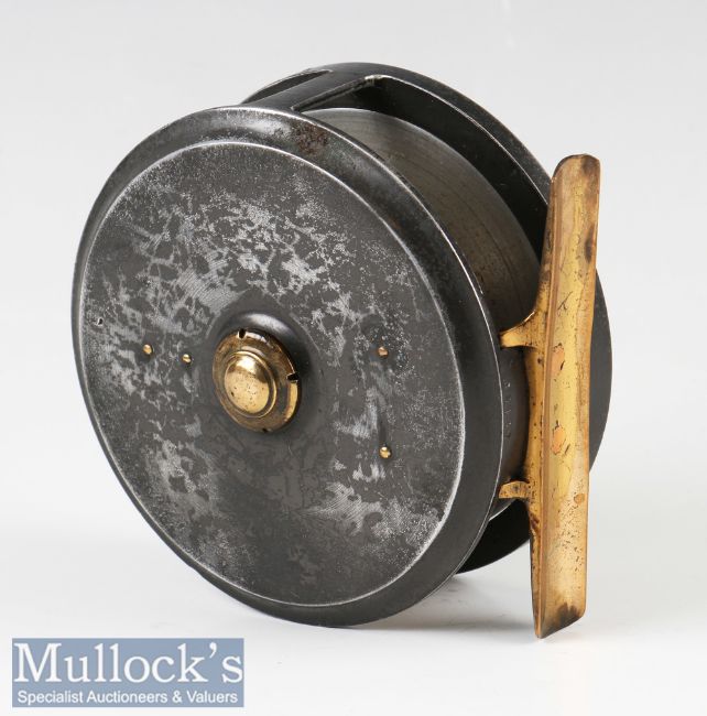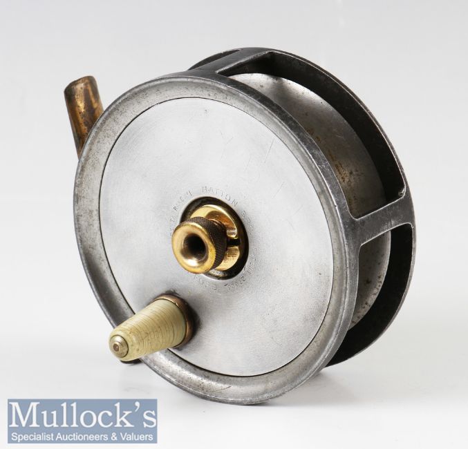Hatton Bros of Hereford 3 ¾” Fly Reel Centabrake No1 patent 27023^ ivorine handle^ fixed check^ smooth brass foot^ signs of wear^ runs smooth overall