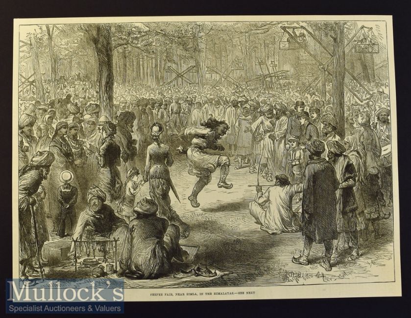 India & Punjab - Seepee Fair^ Near Simla in the Himalayas original engraving from a sketch by Major J M Richardson^ RA published 1881 the fair is the location of a small temple and was also a tribal marriage market 31x23cm laid to card