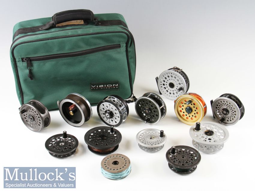 Mixed Selected of Fly Fishing Reels and Spools including Shakespeare Beaulite and Fish Hawk^ 2x Intrepid Rimfly^ and 3 other unnamed reels^ all reels used^ with 6 assorted spools^ some with line^ all housed in a Vision Fly Fishing bag.